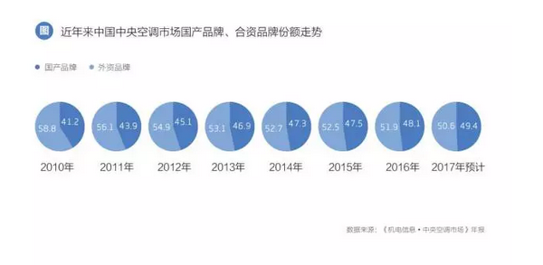 現在可以看出的是:國產品牌的競爭力愈來愈強。對于開篇提出的問題,筆者更傾向于后者。也更希望未來市場會向這個局面發(fā)展。中國工業(yè)制造亟需擺脫廉價制造的陳舊印象,中央空調行業(yè)也需要一場更加徹底的洗牌,重鑄目前中低端產品同質化嚴重的市場格局。