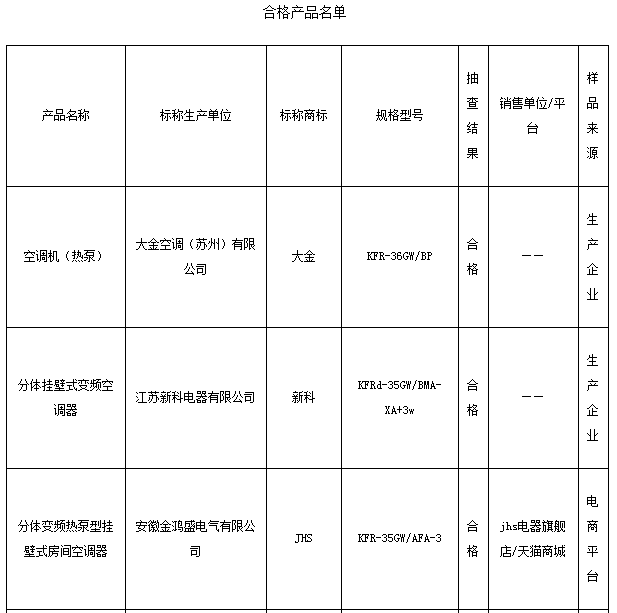 中國質(zhì)量新聞網(wǎng)訊 23日,江蘇省質(zhì)監(jiān)局公布家用空調(diào)器產(chǎn)品質(zhì)量抽查結(jié)果。本次共抽查產(chǎn)品39批次,合格36批次,總體狀況較好。其中,變頻空調(diào)器全部合格,3批次不合格產(chǎn)品來自電商平臺(tái),抽查江蘇企業(yè)生產(chǎn)的4批次空調(diào)器均合格。抽查顯示,部分產(chǎn)品在制冷量、制冷消耗功率、熱泵制熱消耗功率和能效值等項(xiàng)目上存在問題。